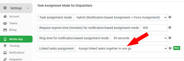 For teams that prefer a streamlined workflow, you can now enable the option to assign linked tasks together. When this mode is active, assigning one task from a job automatically triggers the system to check for any other unassigned linked pickup or delivery tasks. If additional linked tasks are found, they are assigned to the same driver at the same time automatically. This simplifies task assignment, reduces manual steps for dispatchers, and ensures consistency by keeping related tasks with a single driver. As a result, it helps prevent split assignments, minimizes coordination errors, and improves overall operational efficiency, especially for multi-stop or pickup-and-delivery jobs.